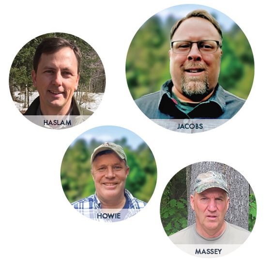 The Northeast region encompasses Maine and New Hampshire. Our Northeast region team managers, Matt Jacobs (Region Manager), Bill Haslam (District Manager), Michael Howie (District Manager), and Todd Massey (Area Manager) have a combined total of 108 years of experience. All managers are licensed professional foresters.